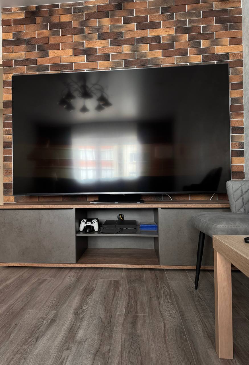 Современная ТВ-зона с лаконичным дизайном идеально впишется в любой интерьер гостиной. Большая тумба с открытыми и закрытыми секциями обеспечивает удобное хранение техники, аксессуаров и мелочей. Прочные материалы и нейтральные оттенки создают ощущение уюта и порядка. Идеальное решение для тех, кто ценит стиль, функциональность и комфорт в доме.
