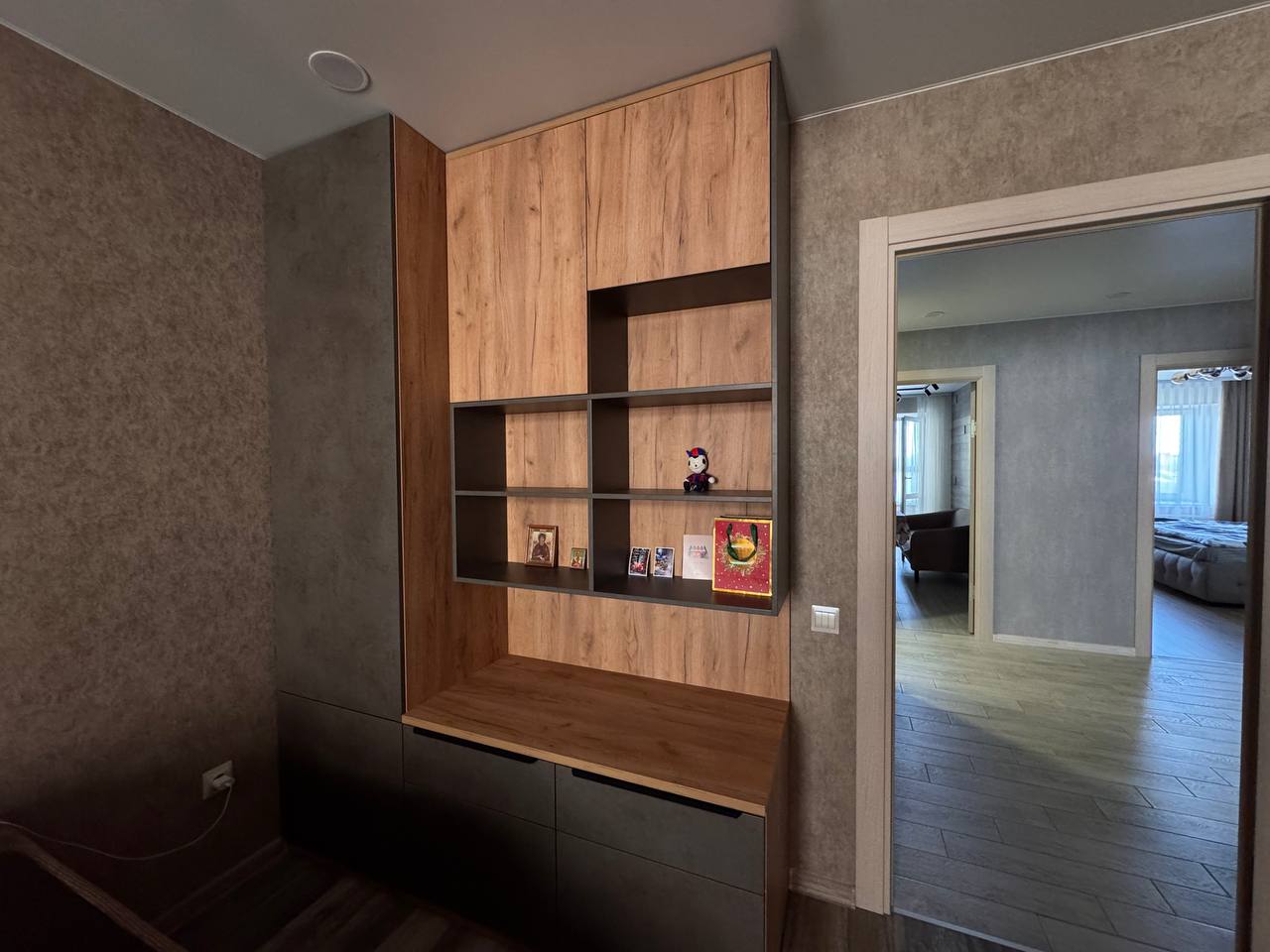 Этот шкаф — не просто место для хранения, а стильный элемент интерьера, который сразу привлекает внимание. Удобная система полок и секций позволяет организовать пространство по вашему вкусу, а высота до потолка гарантирует максимум вместимости даже в небольшой комнате.