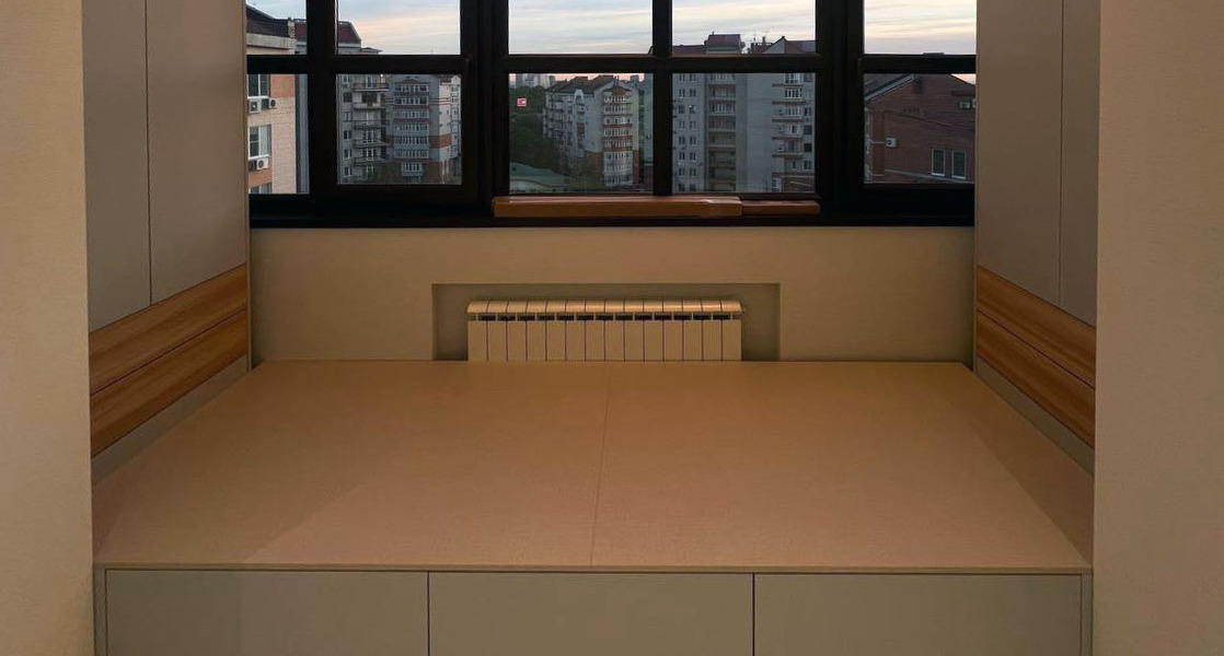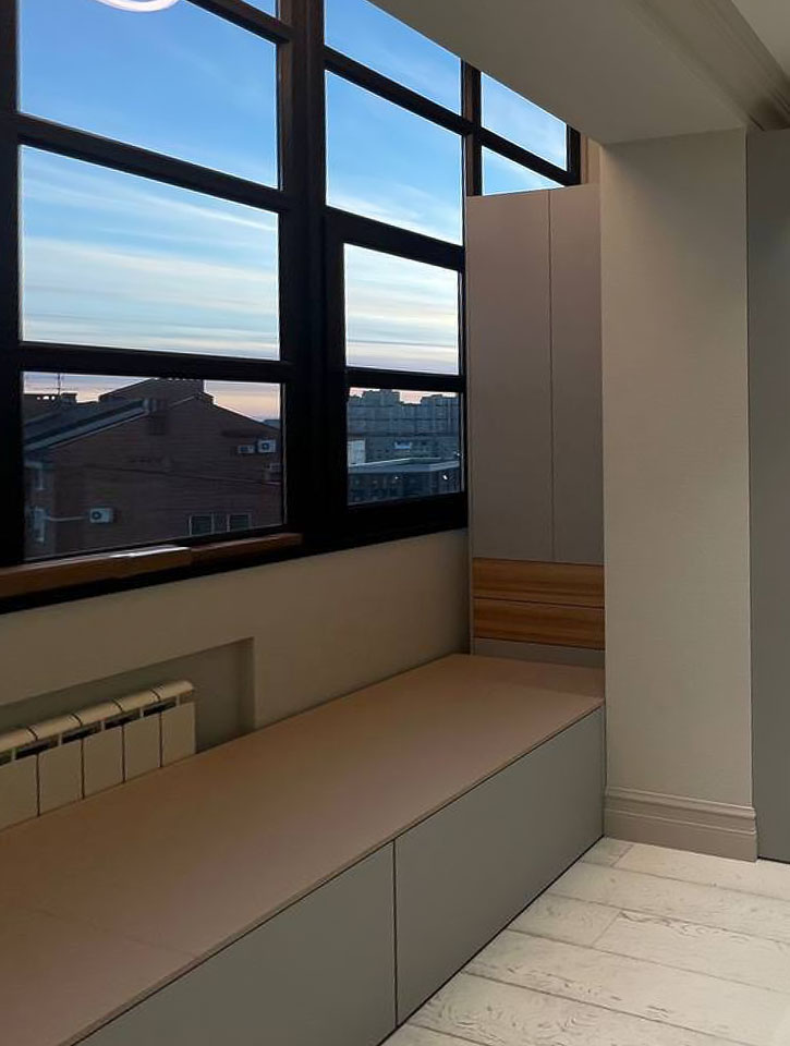 Функциональное рабочее место объединено с зоной отдыха у окна.