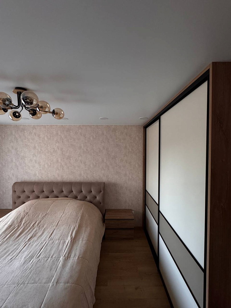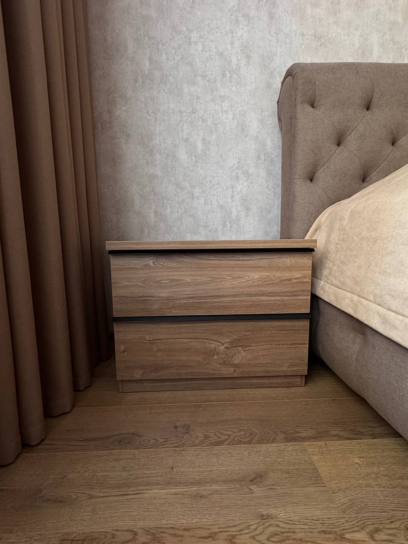 Внутреннее наполнение продумано до мелочей: полки, выдвижные ящики и штанги позволяют удобно разместить одежду, аксессуары и текстиль. Дизайн фасадов легко вписывается в любой интерьер, а качественная фурнитура обеспечивает долговечность и комфорт в использовании. Такой шкаф не только поддерживает идеальный порядок, но и делает спальню визуально более просторной.